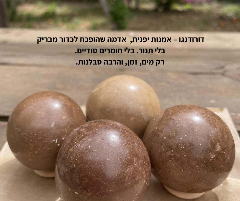 בסדנאות הדורודנגו לומדים את כל התהליך – מהאדמה הגולמית ועד לכדור המבריק. מסננים, לשים, מגלגלים ומלטשים בסבלנות – עד שהברק מתגלה מבפנים. כל משתתף יוצא עם מספר כדורים שהכין . ומקבל את כל הידע להמשיך ליצור כדורים בביתו